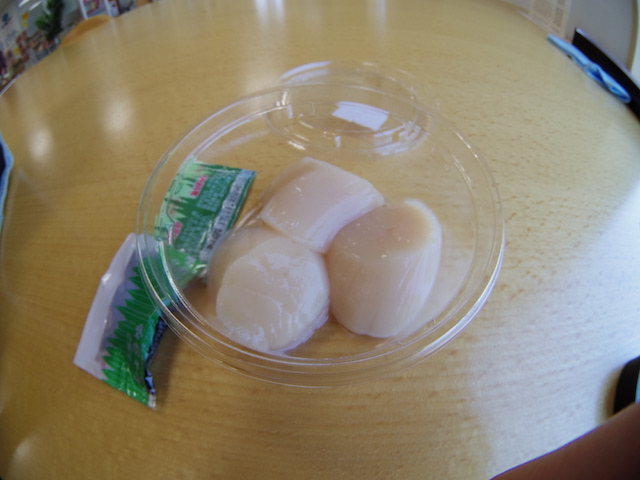 生ホタテ。わさび醤油で食べた。これで200円は安い。