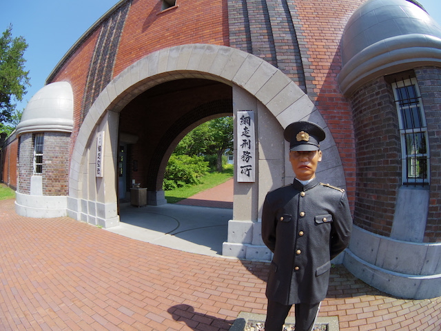 網走監獄の入口。リアルなマネキンが迎える。