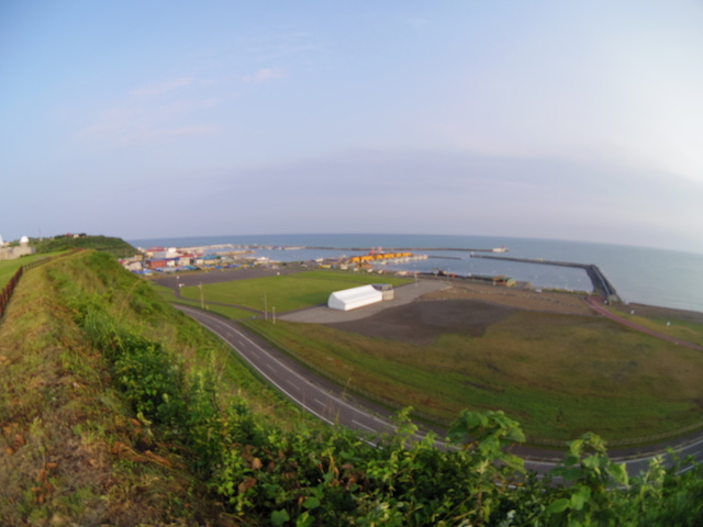キャンプ場の丘から見た苫前港